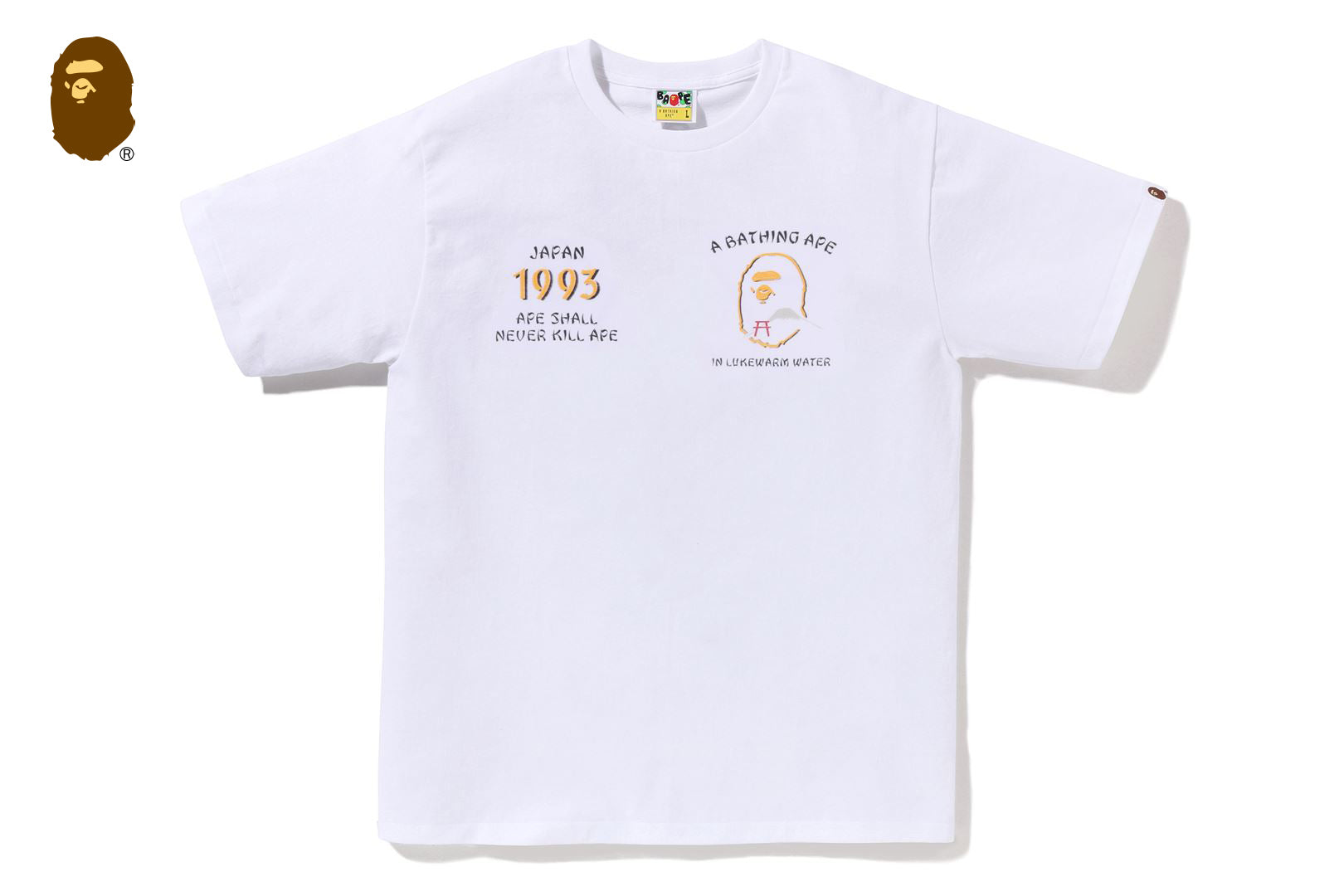 コットン天竺を使用した着心地の良い、ショートスリーブTシャツ。フロントにはAPE HEAD 1993・LOGO等のレタリング、バックにはAPE HEAD型の日本地図とロゴ モチーフをあしらったデザイン。レギュラーフィットシルエットで、インナーにもメイン使いにも着用いただけます。