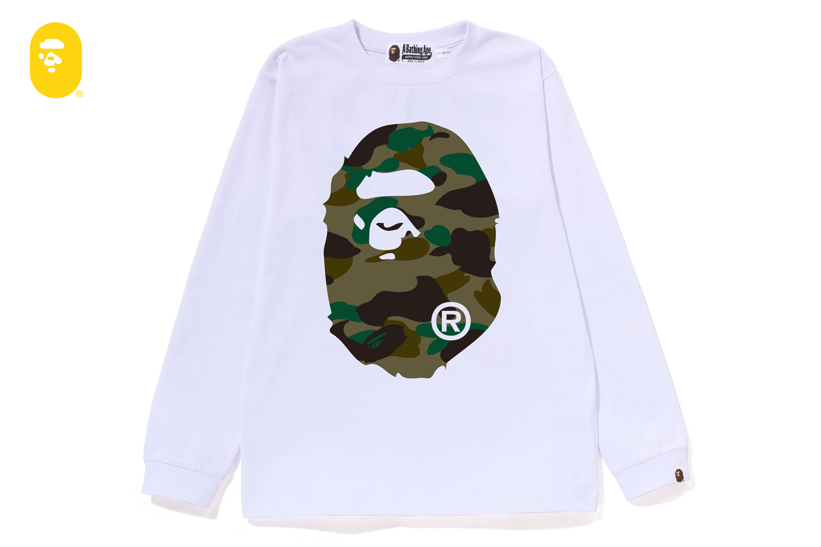 コットン天竺を使用した着心地の良い、ロングスリーブTシャツ。フロントに1ST CAMO柄のBIG APE HEAD グラフィックをラバープリントしたデザイン。レギュラーフィットシルエットで、インナーにもメイン使いにも着用いただけます。
