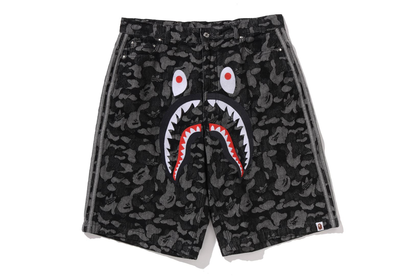 【 BAPE X ADIDAS 】CAMO JACQUARD SHARK DENIM JORTS