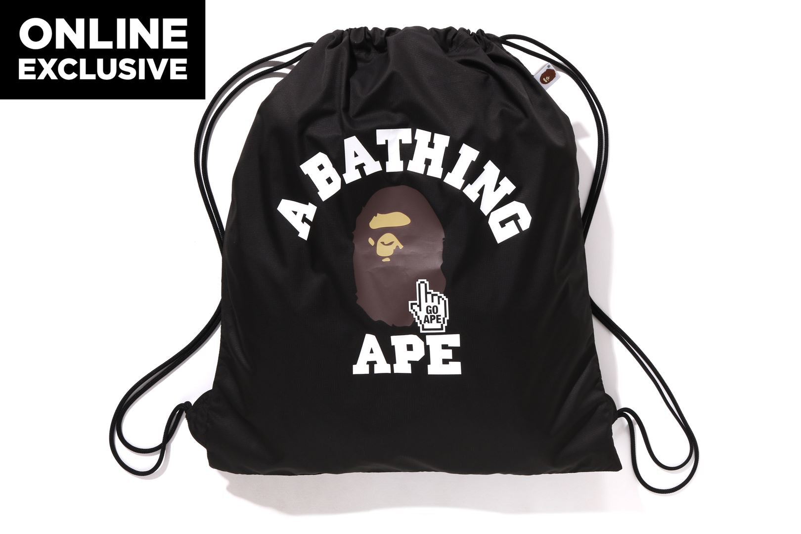 オンライン限定ライン「BAPEC(ベイプシー)」より、今シーズンも多彩なアイテムが登場します。オンラインカルチャーを想起させるアイコニックなモチーフに、BAPE®ならではの視点を掛け合わせ、普段とは一味違うグラフィック表現を落とし込んだアイテムが揃います。特集ページはコチラ軽量で丈夫、そして速乾性に優れたナイロン素材を使用したナップサック。BAPECを象徴するGO APE POINTER COLLEGE ロゴをラバープリントしたデザイン。A4サイズが収納可能な大容量仕様で、デイリーからトラベルまで幅広く活躍するアイテム。ギフトにもおすすめ。その他オンライン限定商品はコチラ