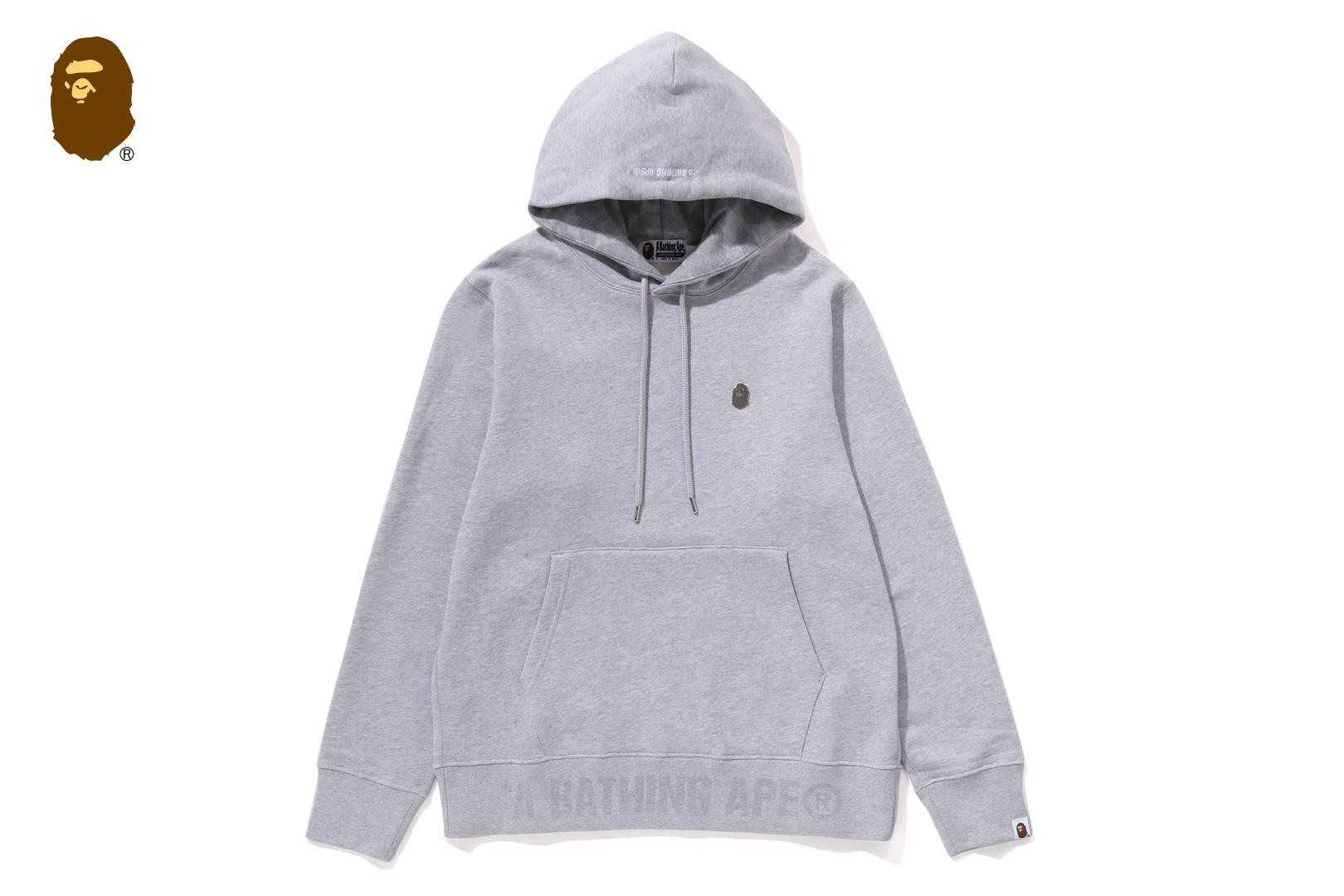裏起毛を使用したプルオーバーフーディ。左胸部分にAPE HEADのワンポイントメタルロゴをあしらったデザイン。レギュラーフィットシルエット。